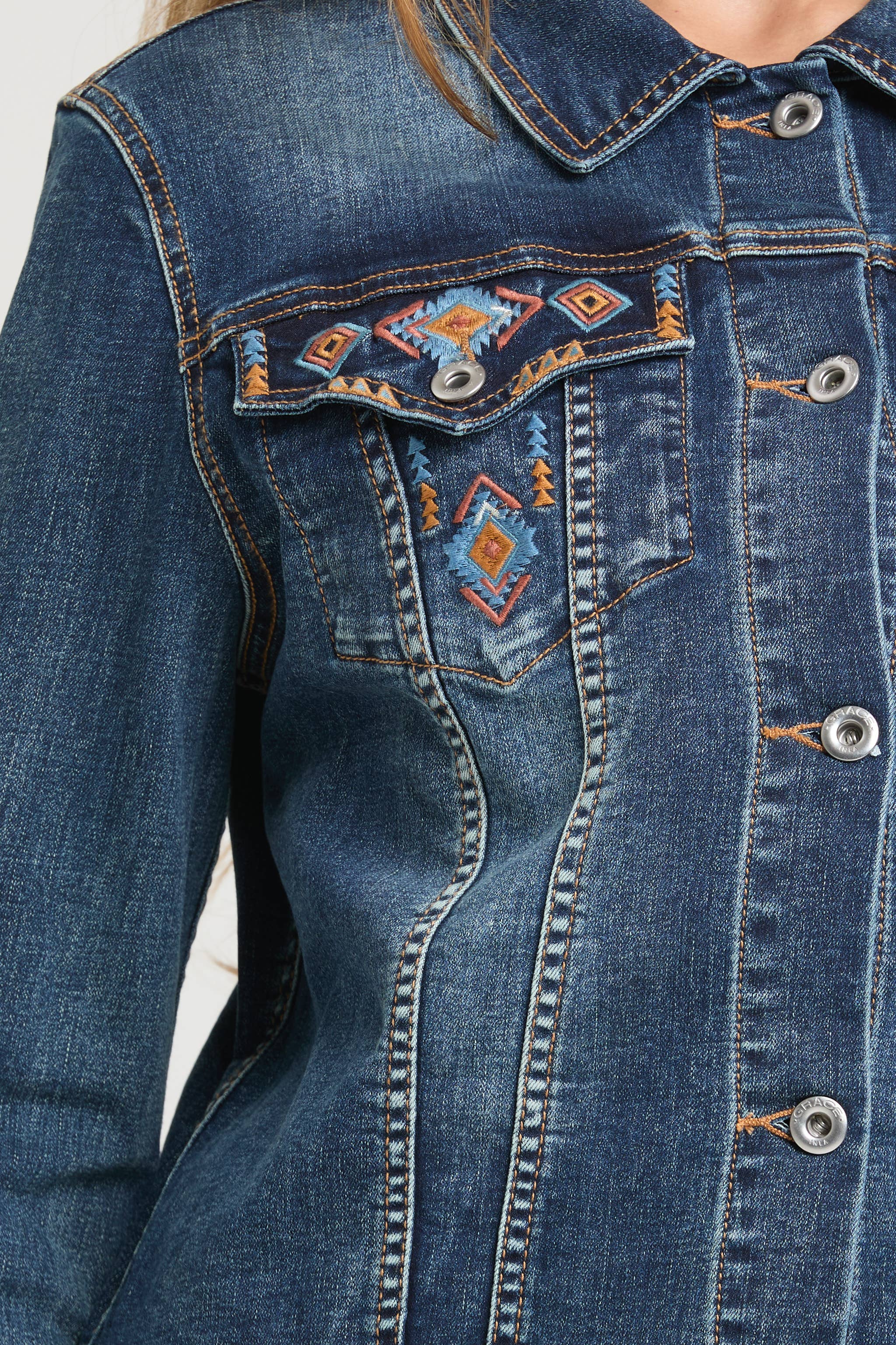 The Grace in LA women denim jacket constructed with comfort in mind, this women's denim jacket has a classic fit and offers give where you need it while still providing a classic straight fit.