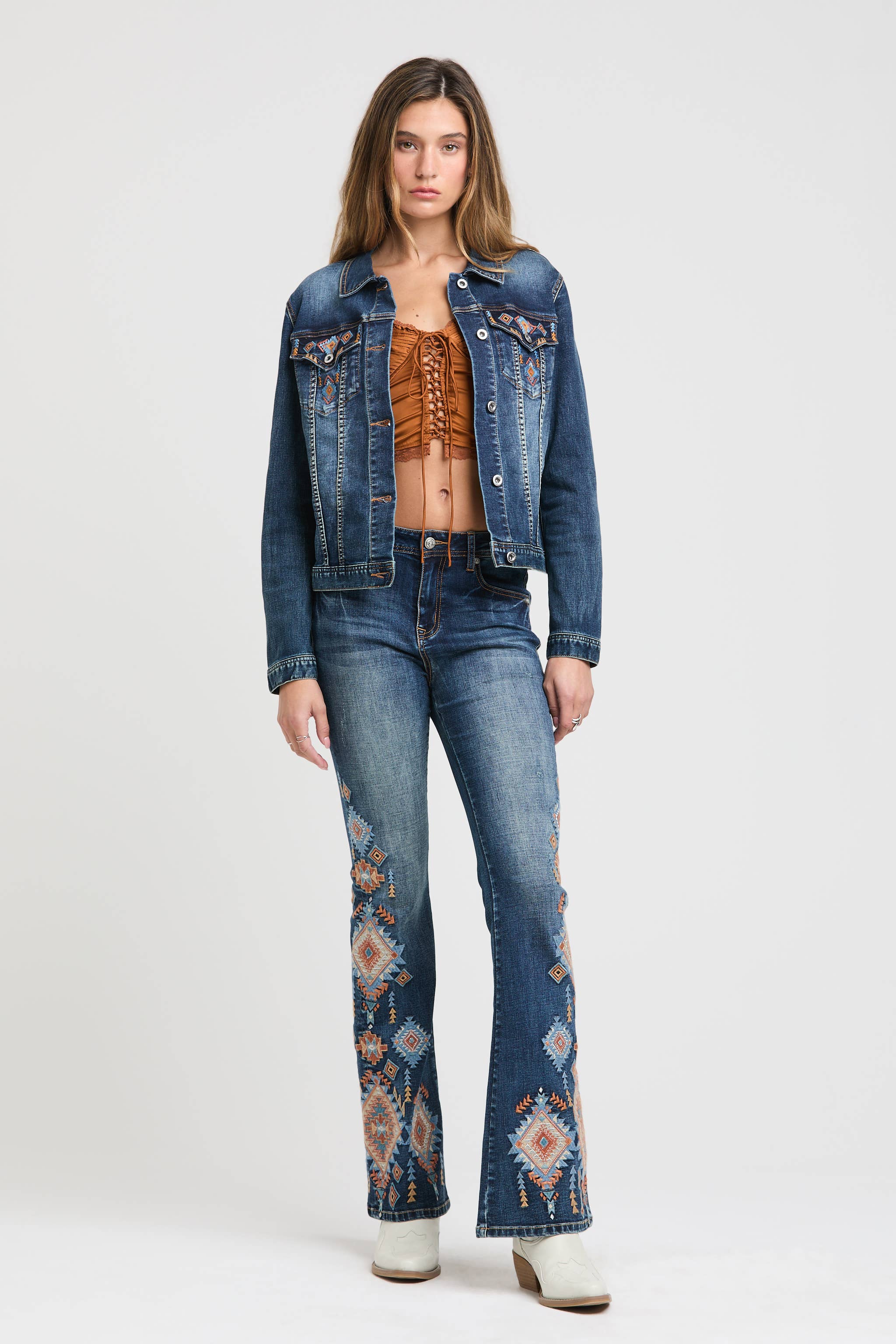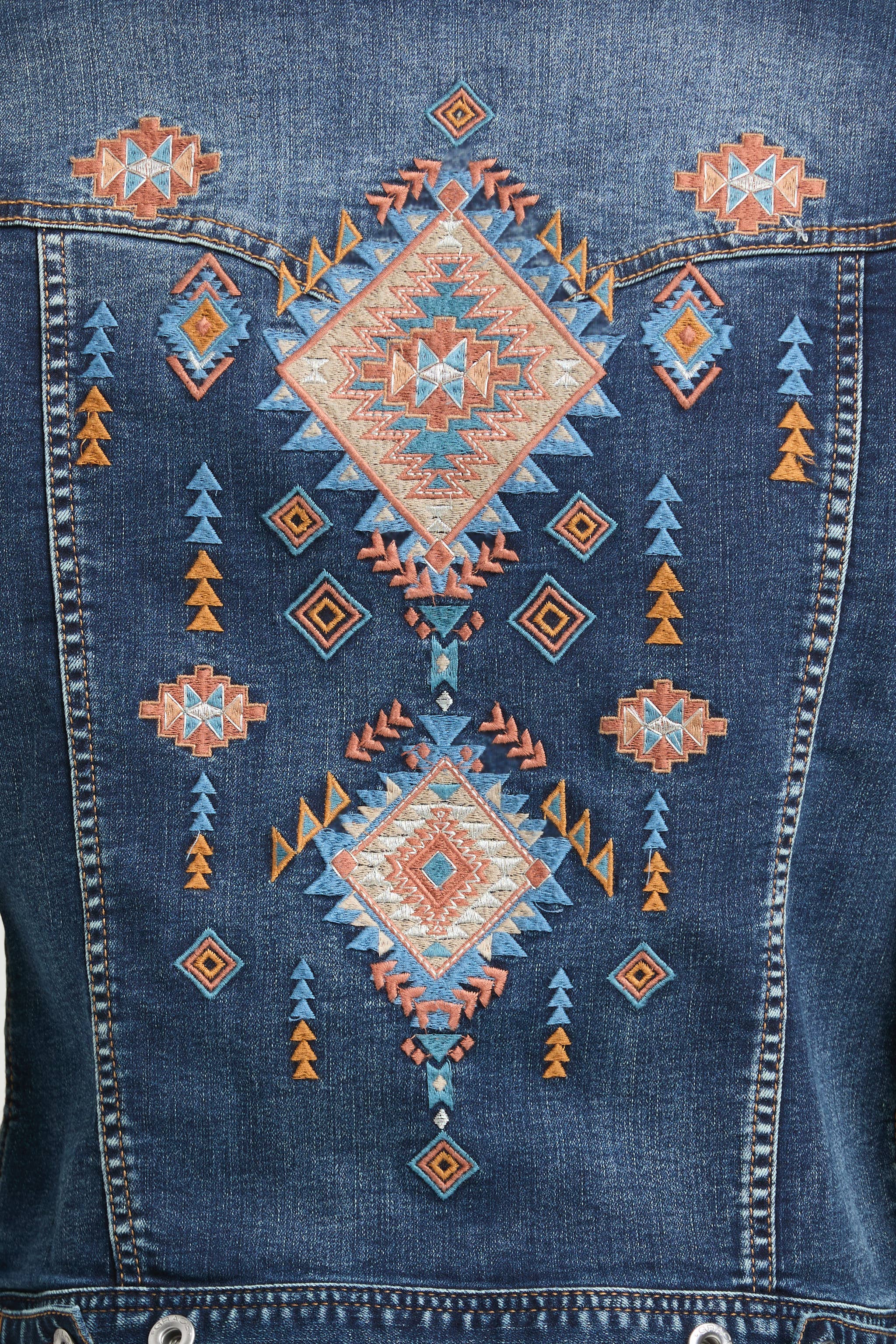Aztec Embroidery Denim Jacket