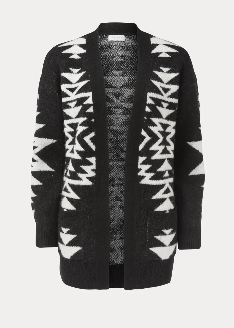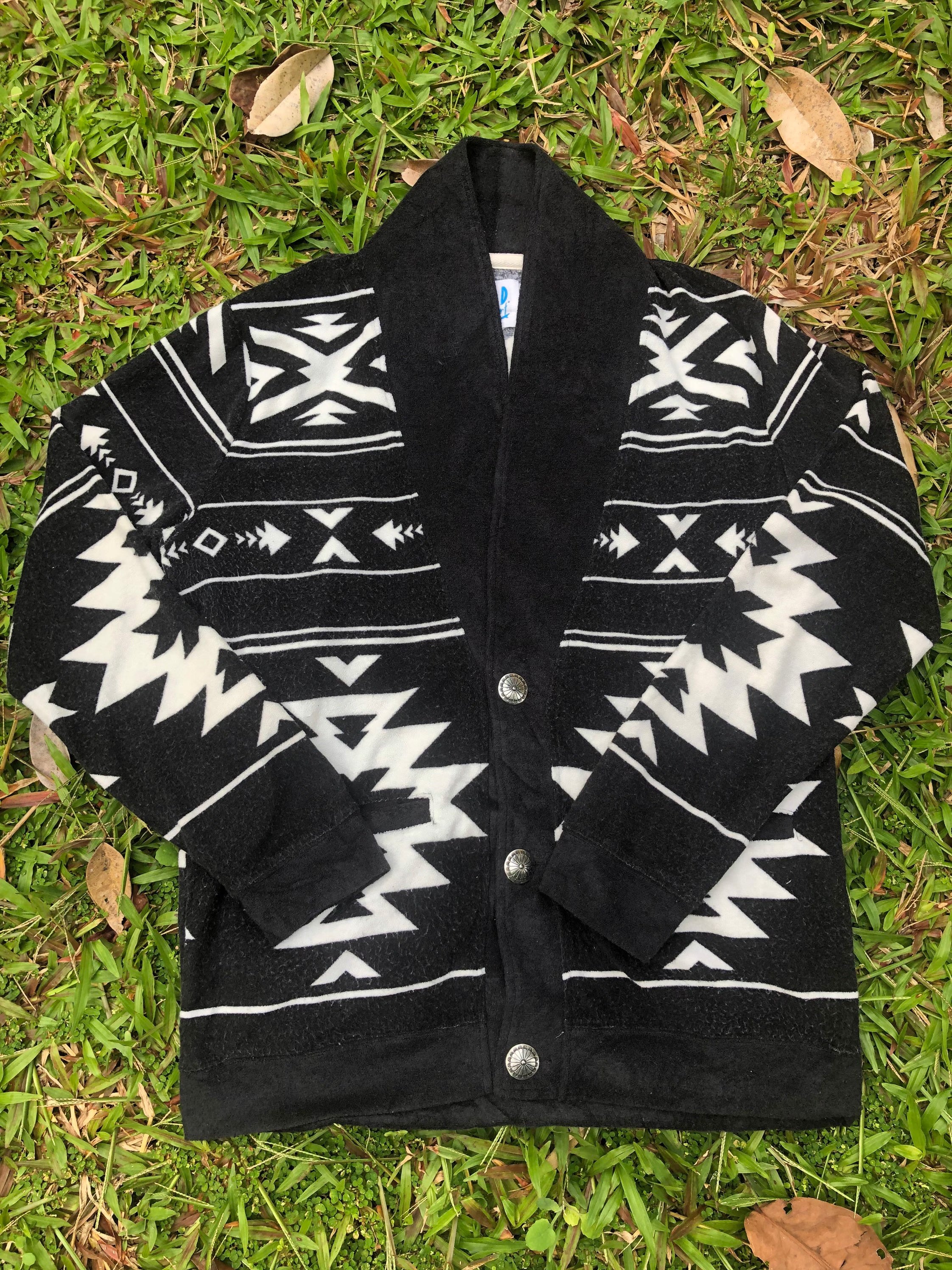 Get ready to rock your winter wardrobe with this Black & Ivory Aztec Cardigan! Featuring eye-catching turquoise concho buttons, this cardigan will add a touch of bohemian flair to any outfit. Stay warm and stylish all season long.