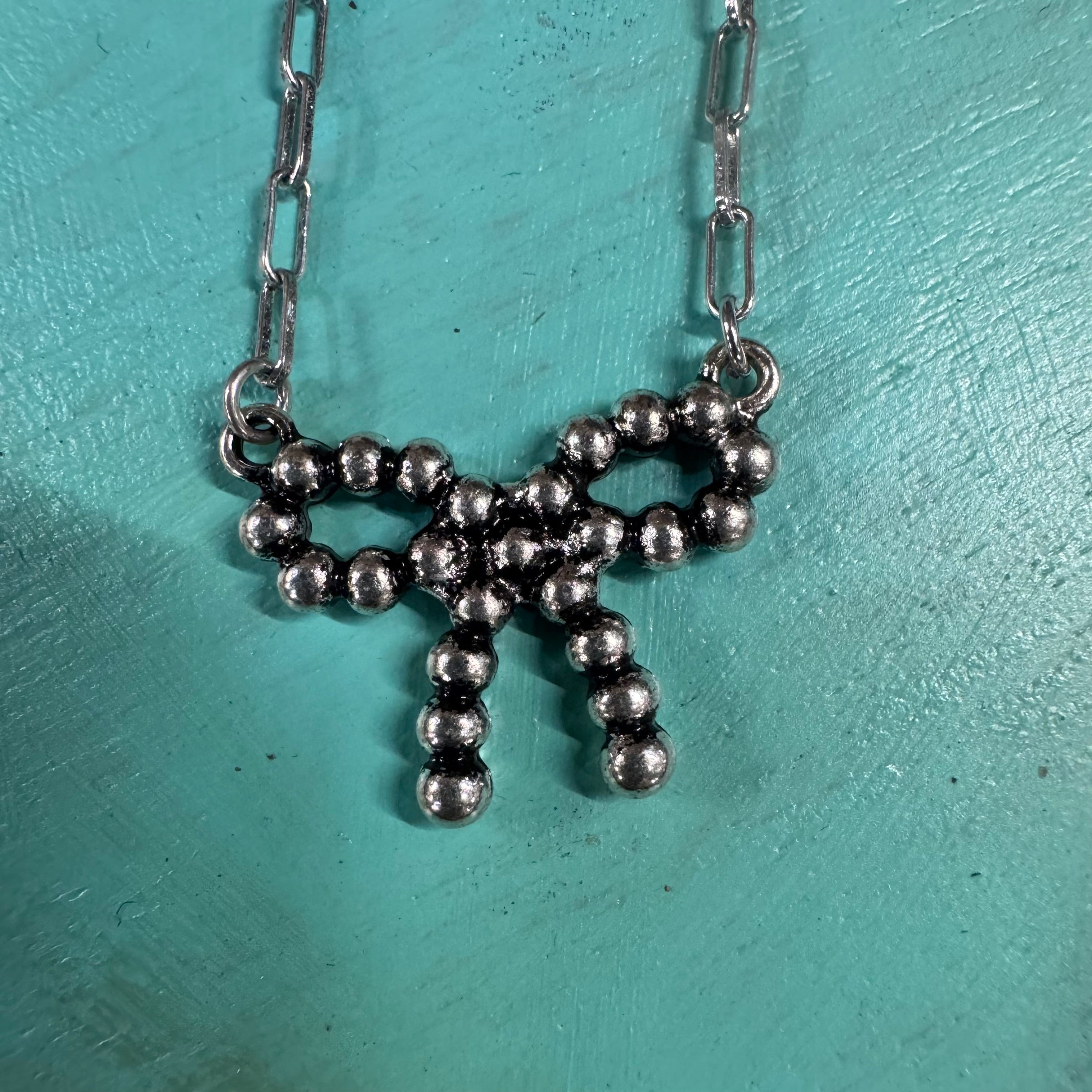 Faux Paper Chain Bubble Bow Necklace