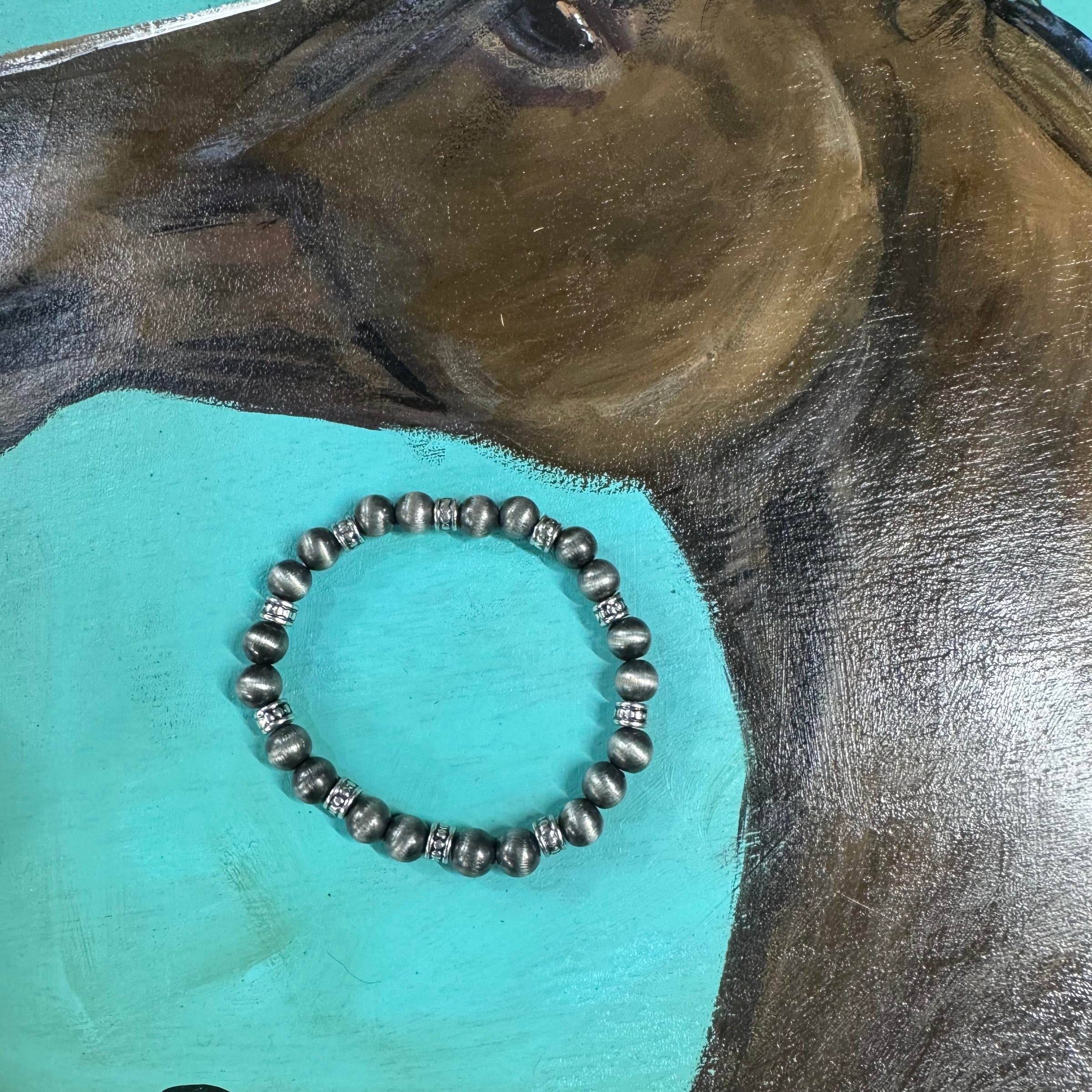 Elevate your style with this striking Faux Navajo Pearl stretch bracelet! Featuring genuine Pyrite beads known for attracting prosperity and protection, interspersed with elegant silver-toned spacers, this bracelet offers a touch of sophistication and positive energy to any look. Perfect for daily wear or as a thoughtful gift.