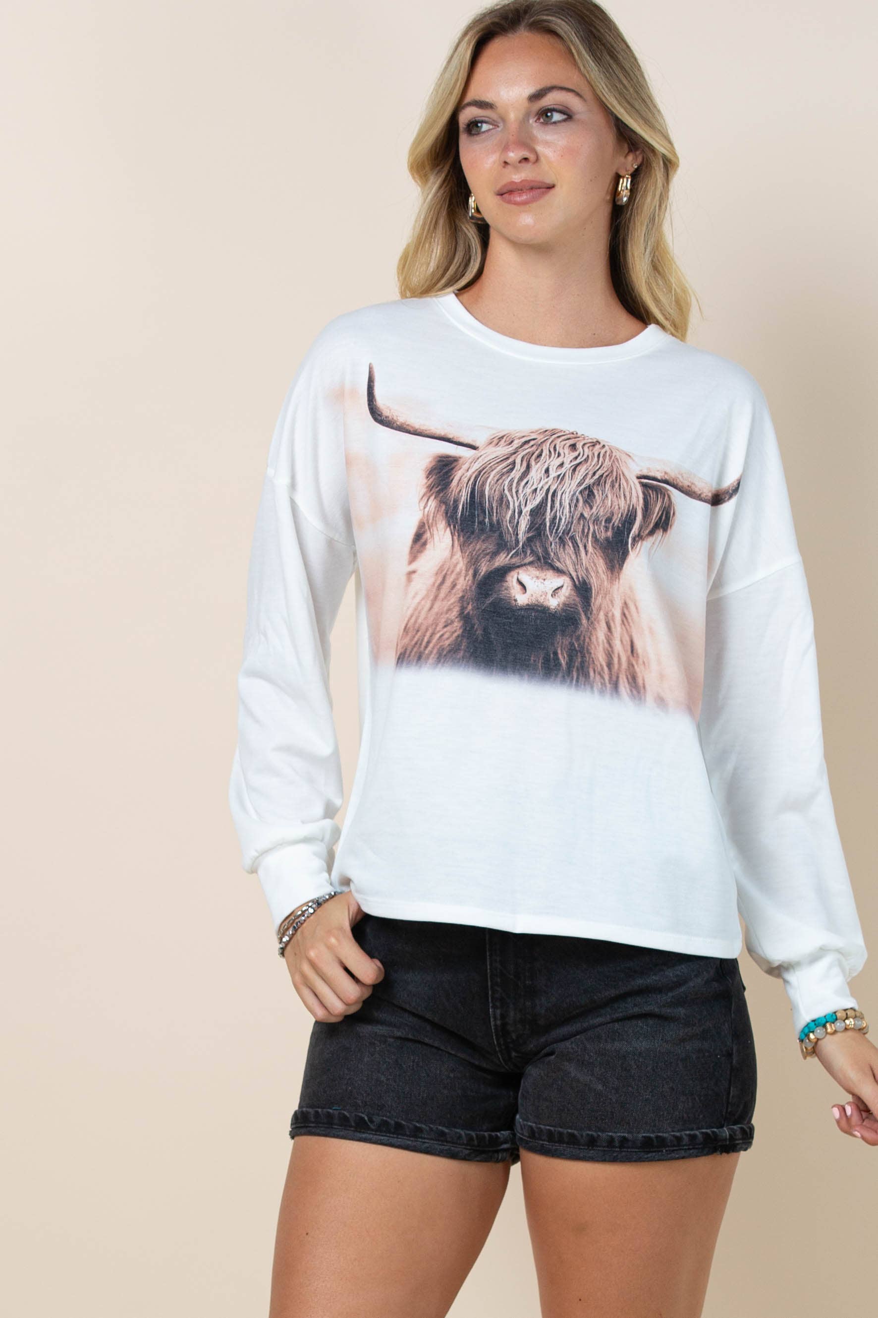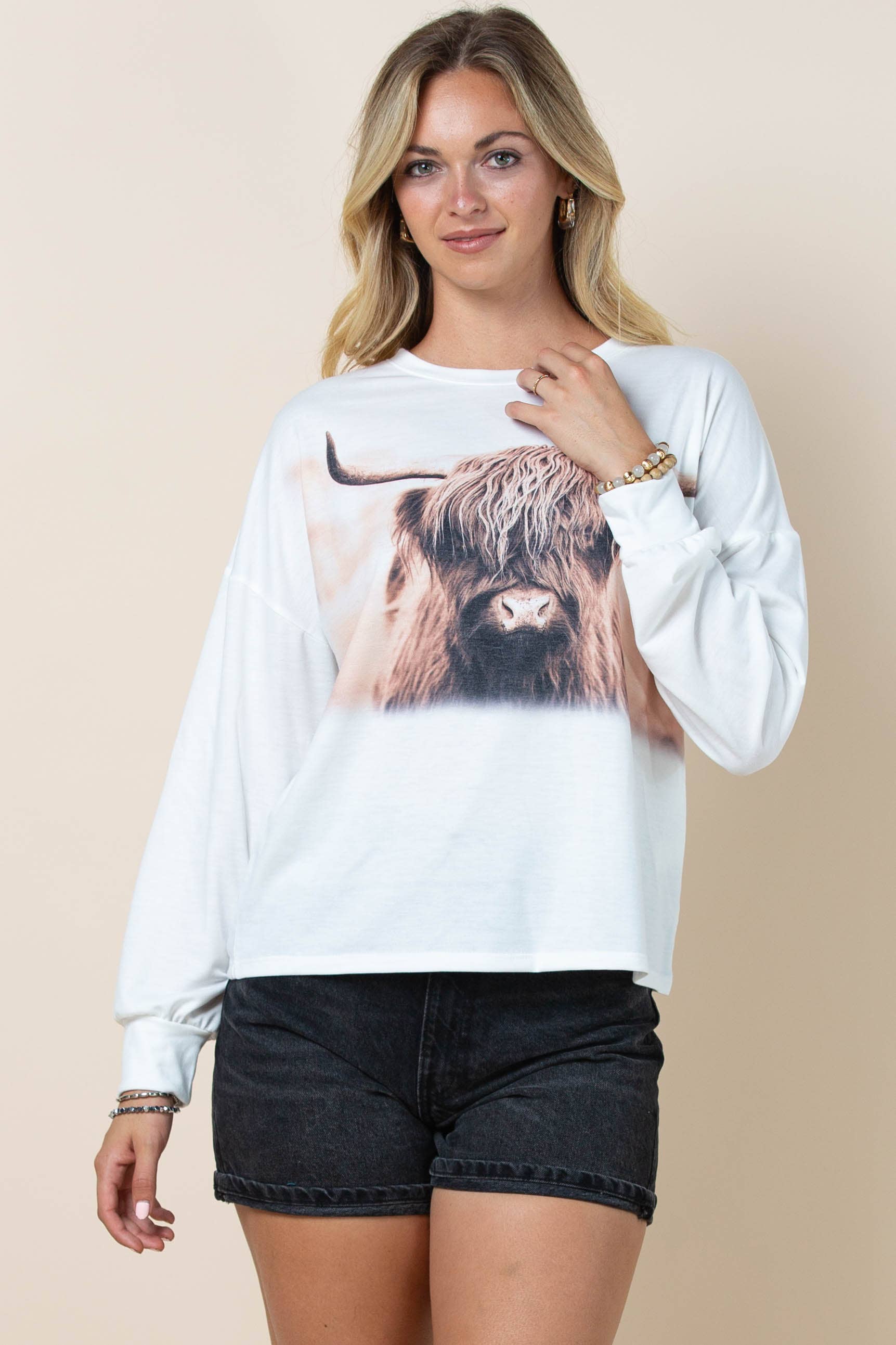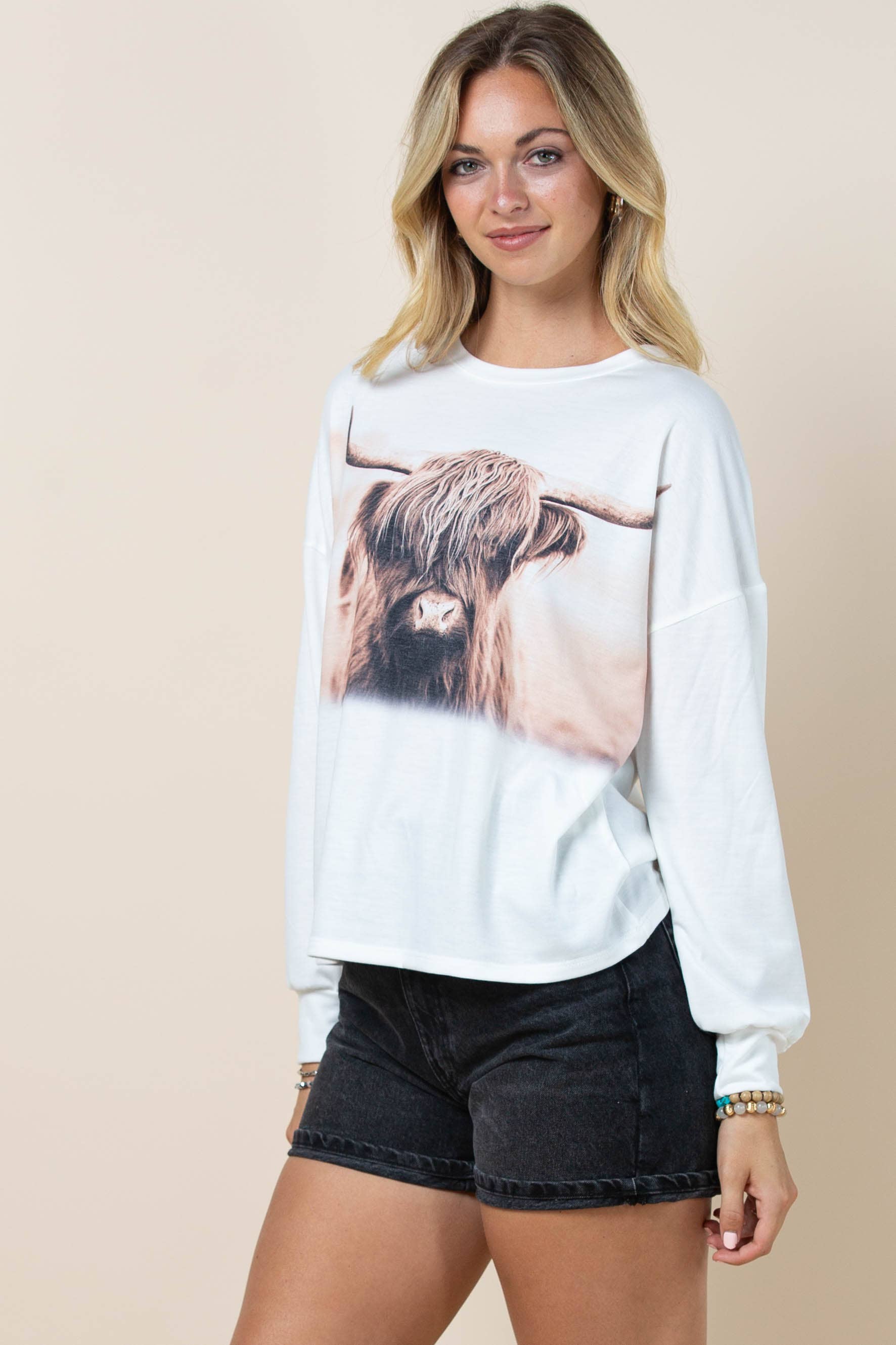 AV1171-TAMMY AMERICAN BISON GRAPHIC RELAXED SWEATSHIRT: