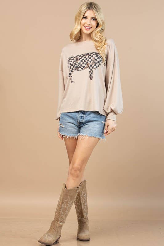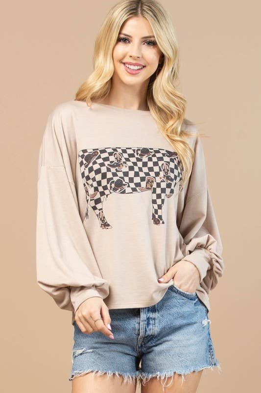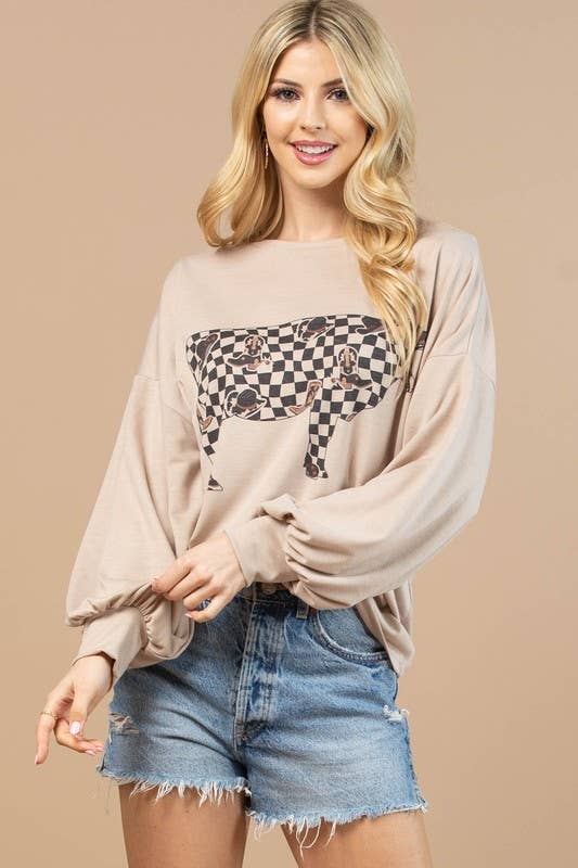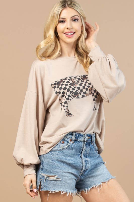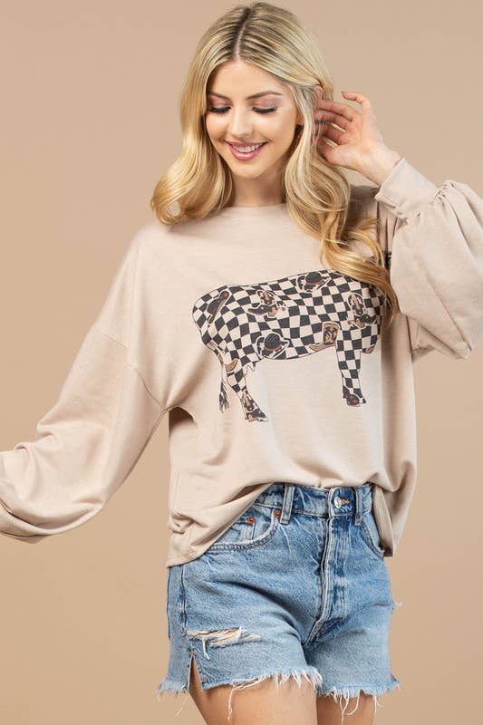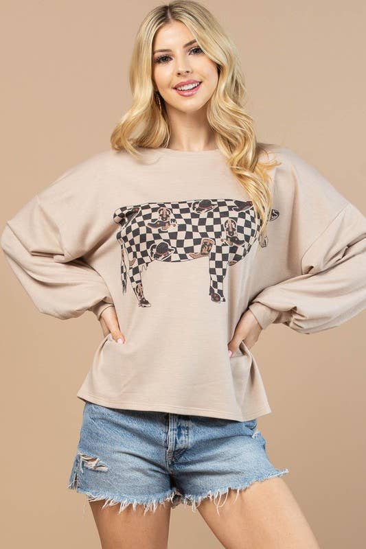 AV1171-VIVI COW CHECKERS GRAPHIC SWEATSHIRT