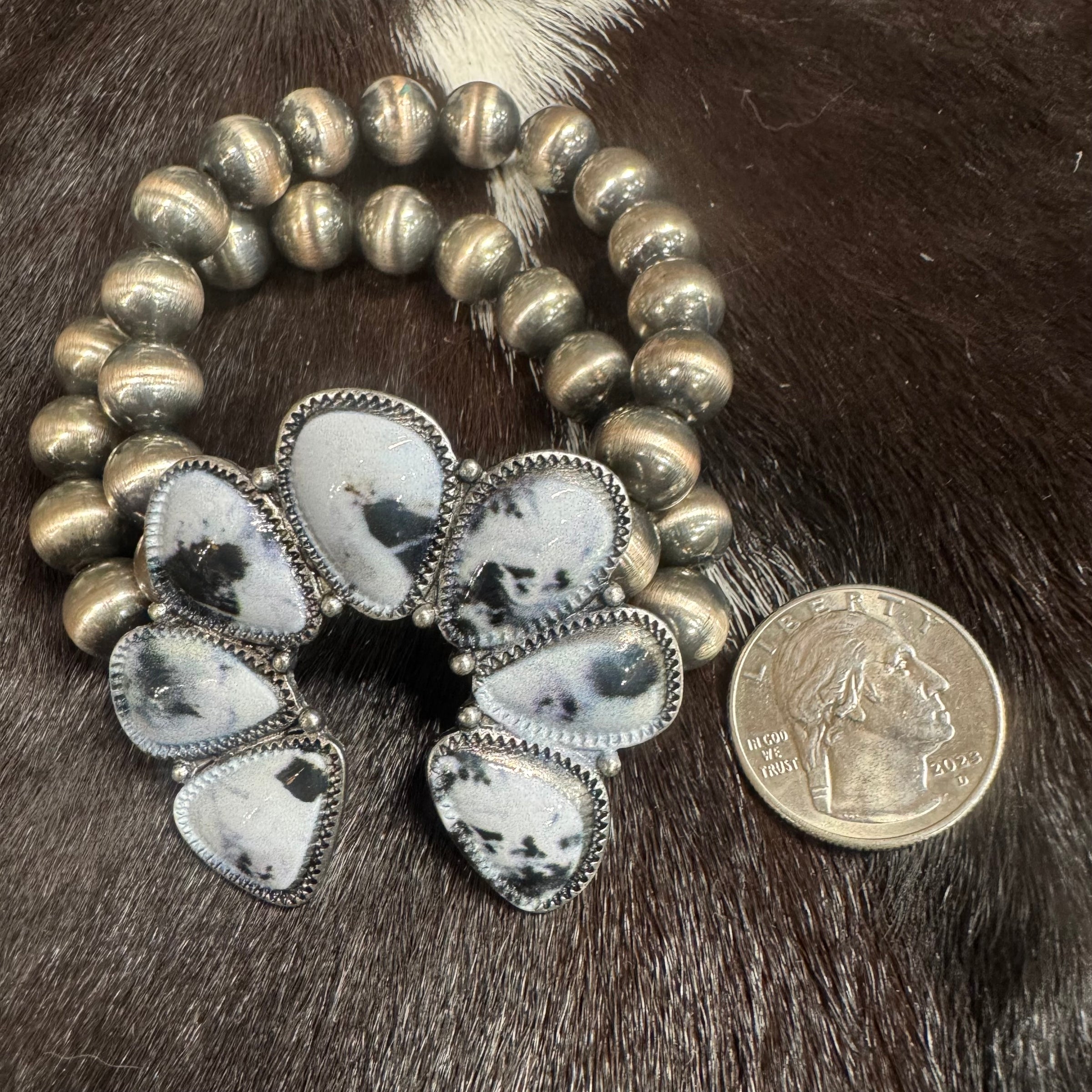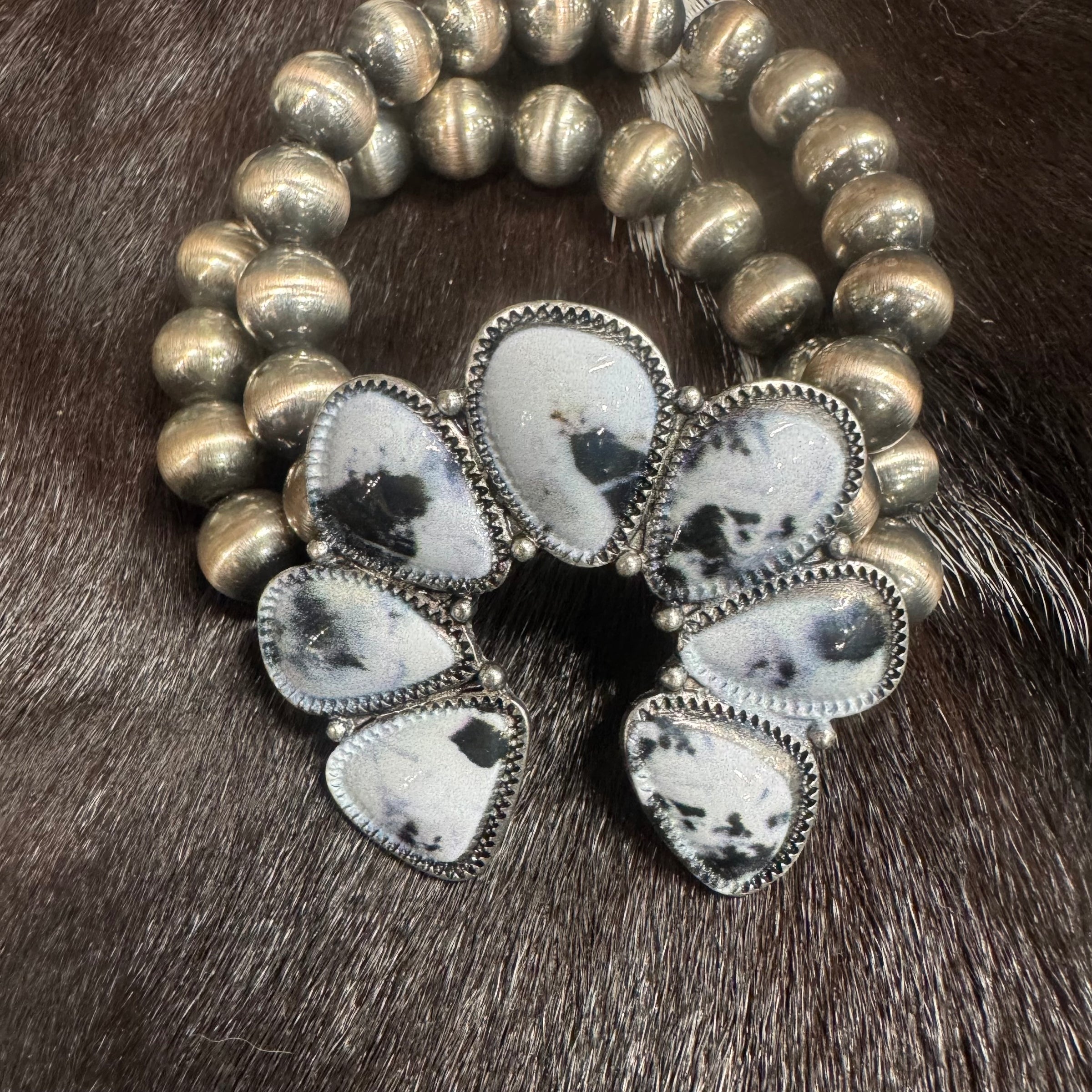 Faux White Buffalo Naja Stretch Bracelet